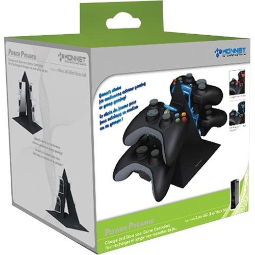 The KONNET Power Pyramid is stylish charging station for the Microsoft XBox 360 wireless controllers. It is equipped to charge up to 4 remote controllers at one time with LED charging status indicators. The pioneering rhombus-shaped mechanical design reflects its heavy metallic-like style and goes beyond common charging capability. In addition to it's charging capabilities, the KONNET Power Pyramid is truly a conversation piece which will be the envy of others.